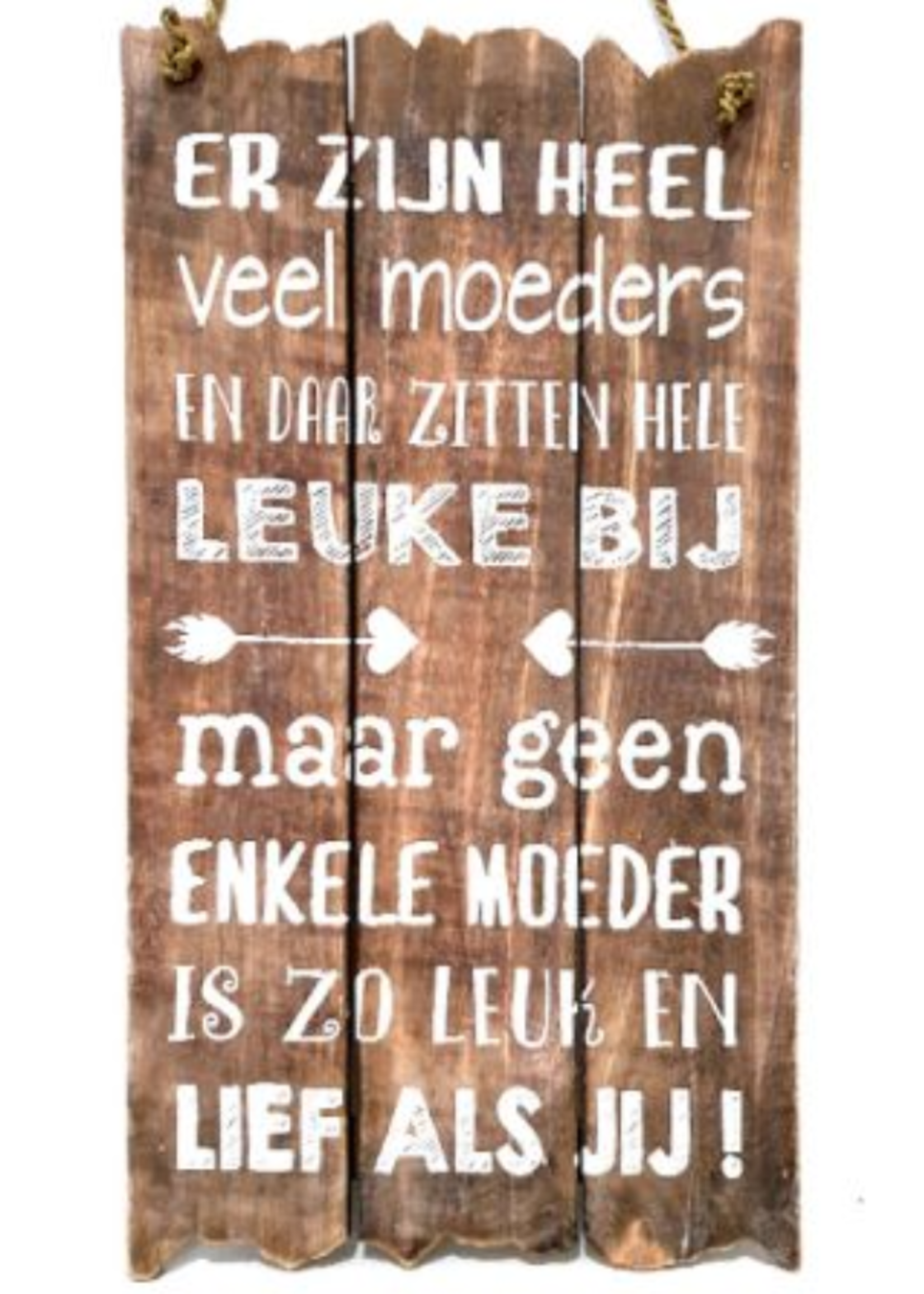 Toon je waardering voor je moeder met de BonTon houten tekstplank "Er zijn heel veel moeders...". Natuurlijke kleur, 55x30 cm, perfect voor elke ruimte!